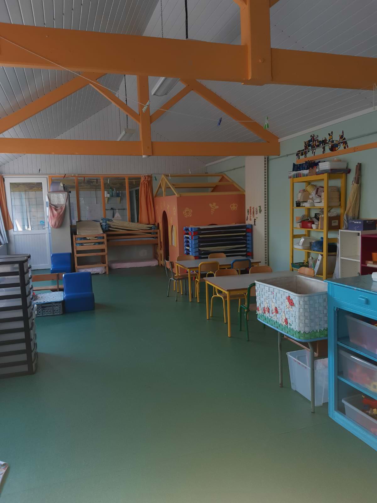 Elle se tient dans le bâtiment modulaire. Le goûter du soir est fourni par l’école: les enfants goûtent à la garderie.